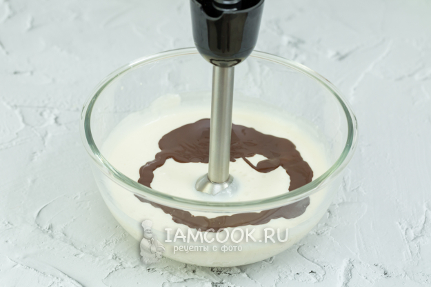 Добавьте шоколад в творожную смесь.