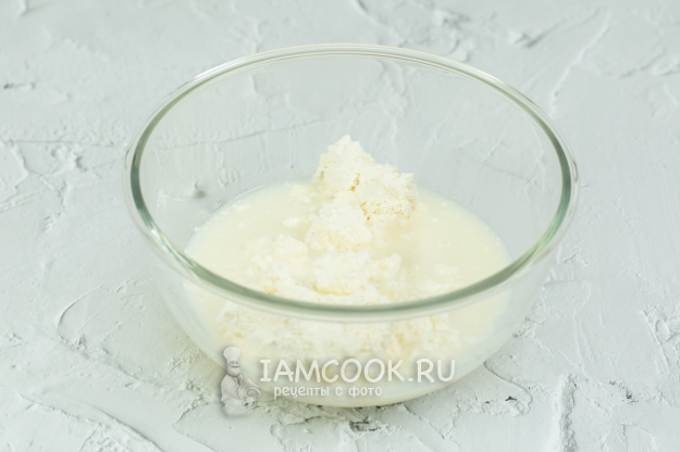Смешайте творог и молочно-желатиновую смесь. Творог должен быть комнатной температуры!