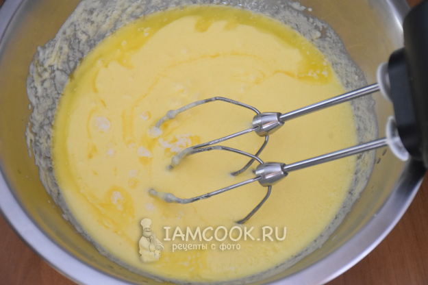 Влить растопленное сливочное масло и еще раз перемешать.