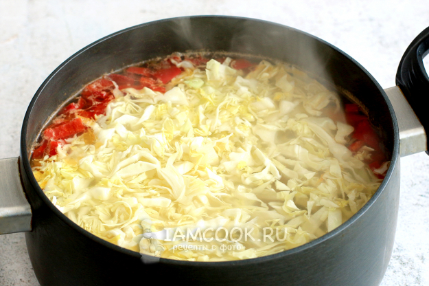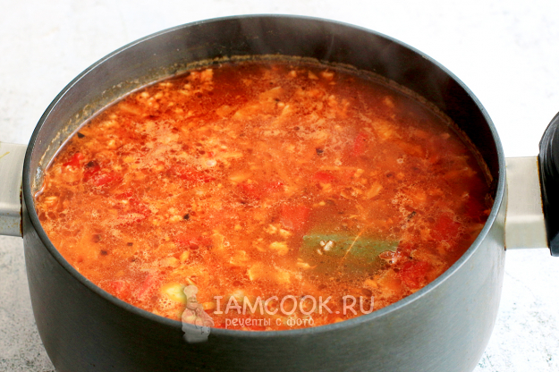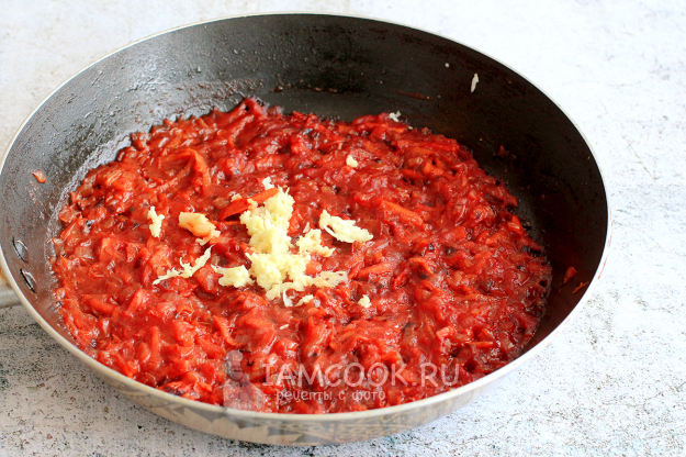 Через три-пять минут добавьте в кастрюлю подготовленную зажарку.