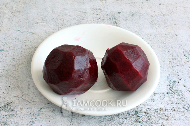Параллельно отварите свеклу в кожуре 30 минут, затем сразу же поместите ее в ледяную воду и оставьте на 10 минут. Из-за резкой смены температур свекла быстро дойдет до готовности и легко очистится.