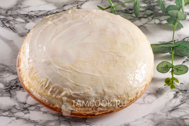 Готовый собранный торт отправьте в холодильник для пропитки на 1-2 часа.