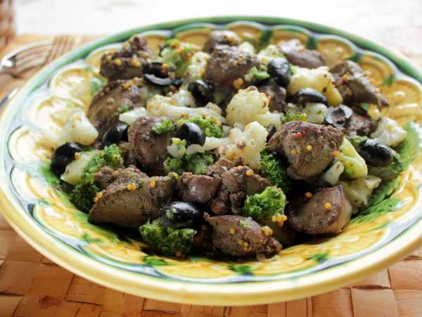 Подготовьте необходимые ингредиенты для создания ПП-салата с куриной печенью и цветной капустой на обед, ужин или для перекуса.