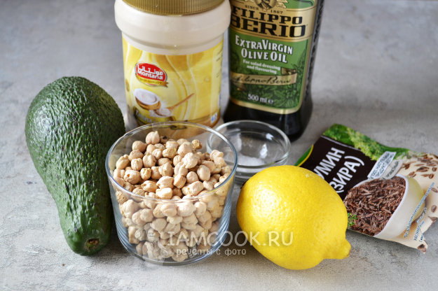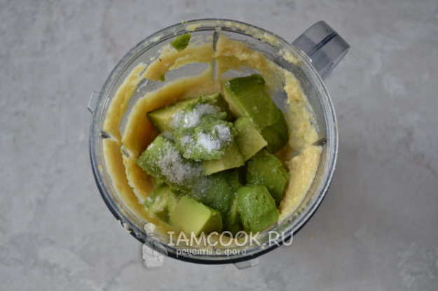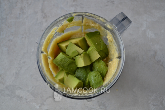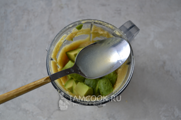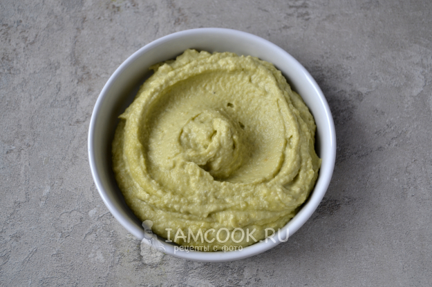 Измельчите авокадо с нутовым пюре до гладкой массы.