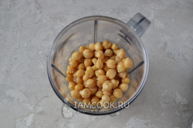 Измельчите нут до однородной консистенции. Если нутовое пюре получается густым, то влейте немного отвара, в котором варился нут. И еще раз измельчите. Добавляйте отвар до нужной вам густоты пюре.