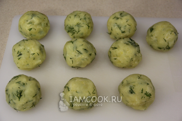 Перемешать картофельную массу. Сформировать из картофельной массы шарики любой массы.