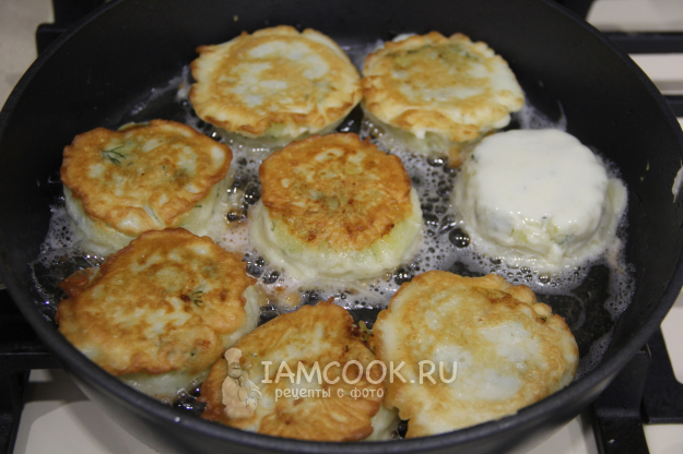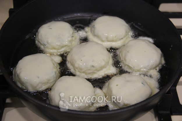 Обжарить картофельные котлеты в кляре на сковороде с двух сторон до золотистого цвета.
