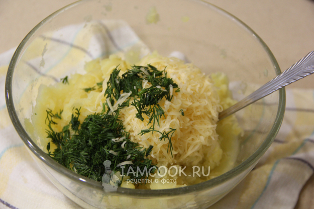 Укроп промыть и мелко нарезать. Добавить укроп к картошке.