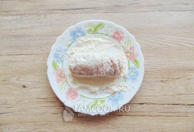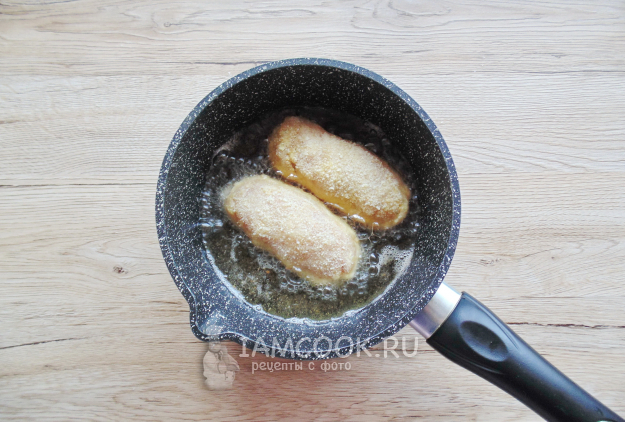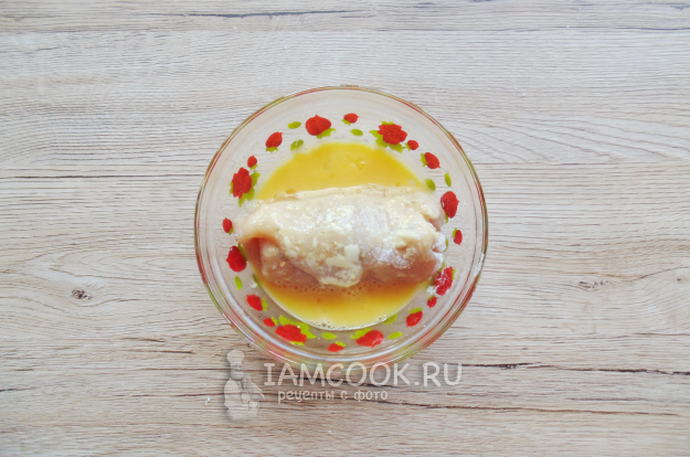 Затем окуните в яйцо, которое предварительно немного взбейте.