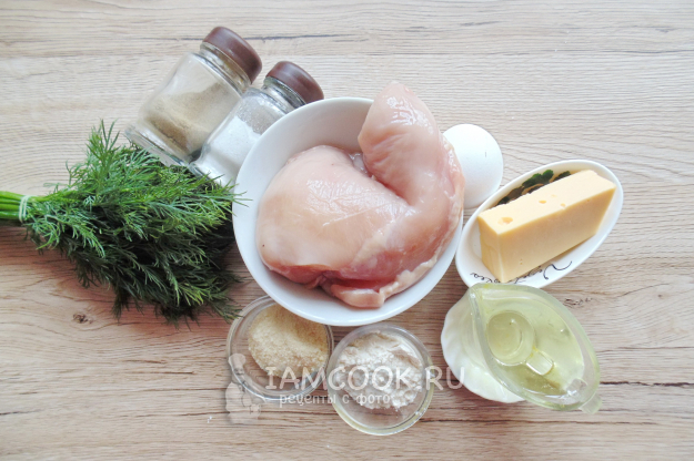 Возьмите все ингредиенты по списку для приготовления натуральных котлет из филе птицы.