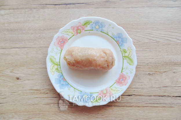 Сверните пласт рулетом и придайте ему продолговатую форму.