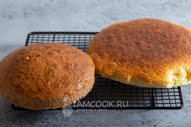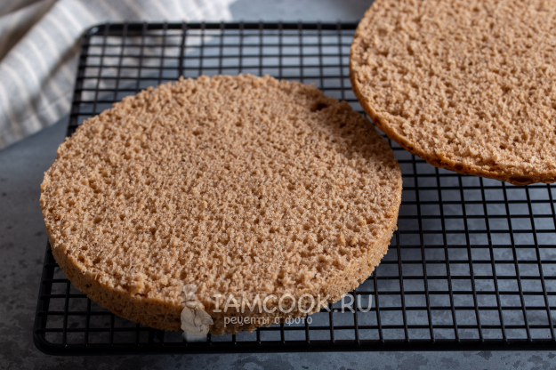 Оба бисквита извлеките из формы и выложите остывать на решётку.