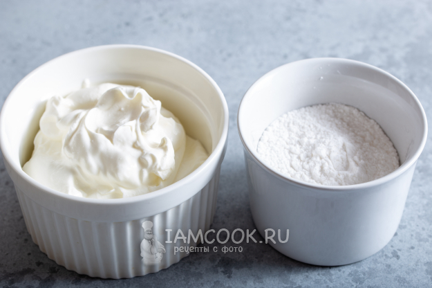 Крем. Для крема возьмите холодную сметану и мелкий сахар или сахарную пудру.
