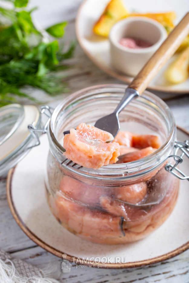 Это один из простых рецептов засолки горбуши кусочками. Готовится всё очень просто, только, как и во всех процессах засолки, нужно время. Хотя в этом рецепте на приготовление рыбы времени надо совсем чуть-чуть. Зато в итоге получается очень нежная, малосолёная горбуша, которая отлично подойдёт и ко многим блюдам, и как самостоятельная закуска.