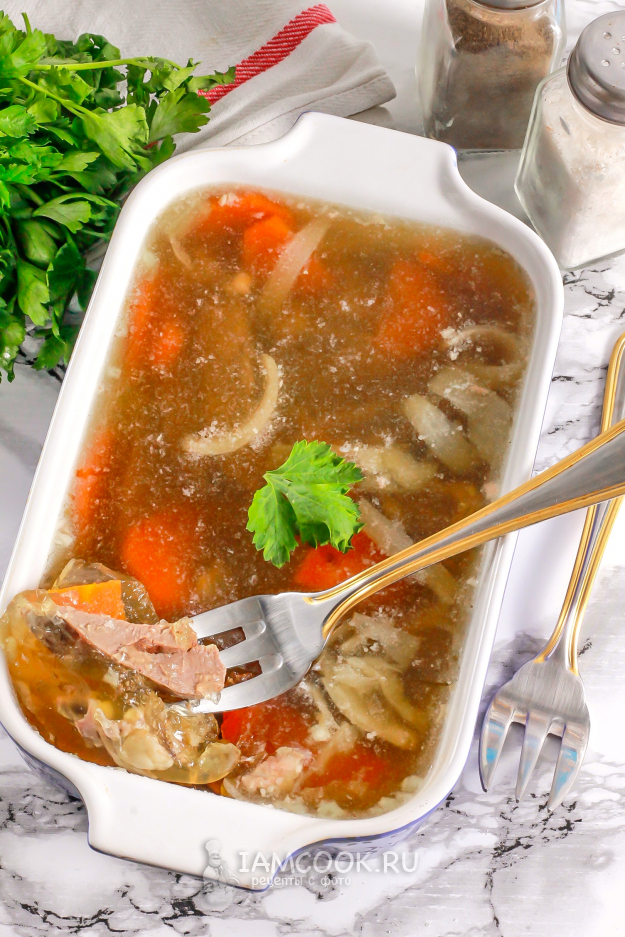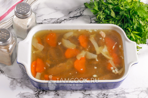 Еще раз тщательно размешайте бульон с желатином и залейте в емкость.