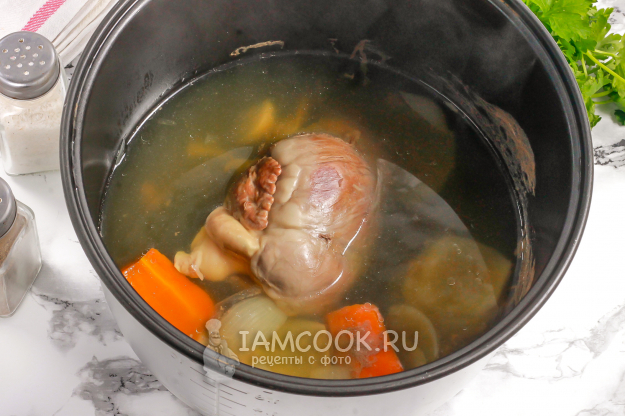 Влейте теплую воду и отварите сердце примерно 1,5-2 часа. Не забудьте удалить пену после закипания жидкости!