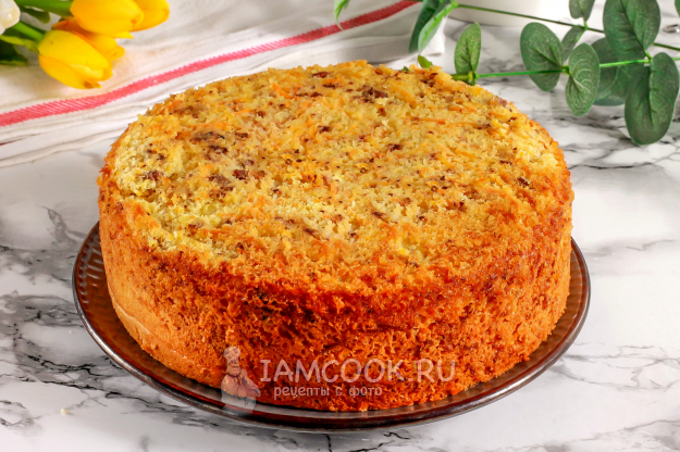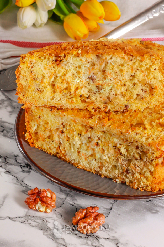 Готовый морковный бисквит с грецкими орехами подайте к столу. По желанию его можно пропитать сиропом или присыпать сахарной пудрой. Можно приготовить из него вкуснейший торт.