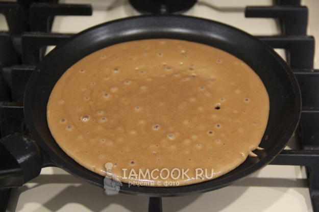Сковороду хорошо разогреть. Я выпекала на сковороде 20 см. Выпекать коржи на сухой сковороде. Вылить немного теста и сформировать круглый корж. Выпекать на медленном огне. На поверхности появятся лопающиеся пузырьки.