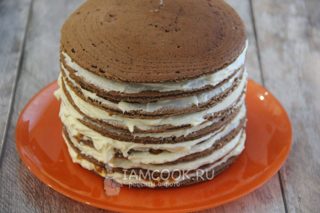 Готовые коржи остудить, обрезать края по тарелке или с помощью кольца. У меня получилось 9 коржей.