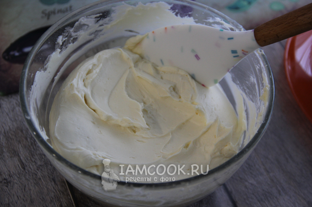 Для крема масло предварительно размягчить. Взбить масло с сахарной пудрой в течение 5 минут, затем добавить творожный сыр. Взбить до полного соединения ингредиентов.