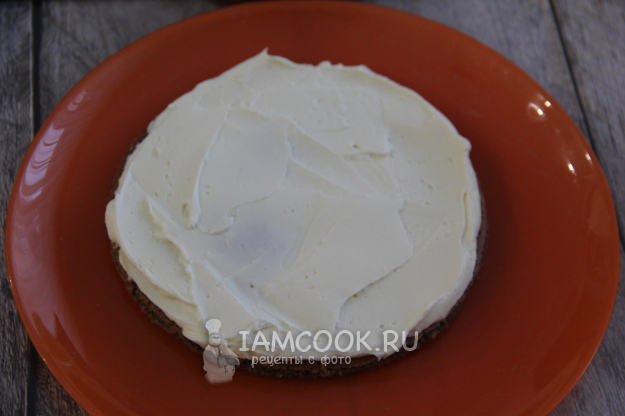 Сформировать торт. Корж выложить на тарелку и смазать кремом.