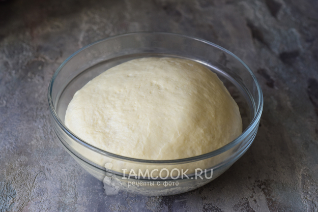 Замесим мягкое, не прилипающее к пальцам тесто, округлим в миске, накроем кухонным полотенцем и оставим подходить на час.