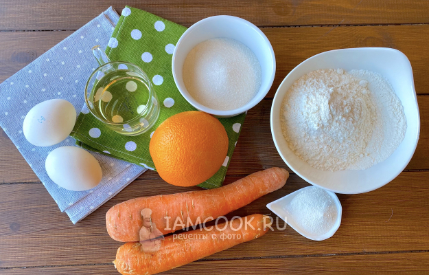 Подготовьте все необходимые продукты для морковного кекса с апельсином.