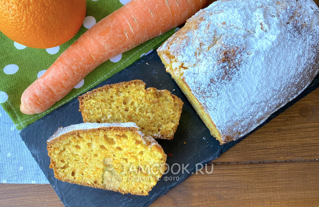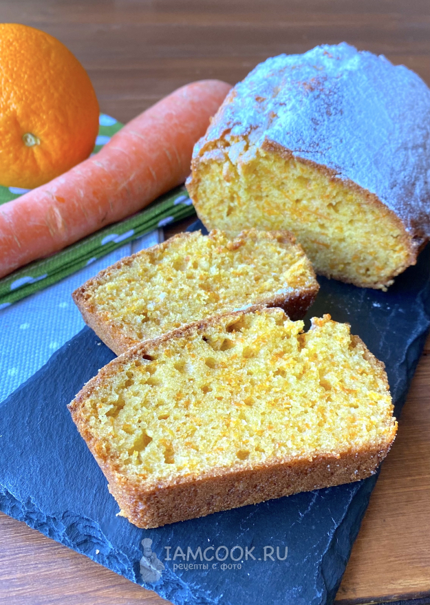 Извлеките морковный кекс с апельсином из формы и остудите. Затем нарежьте на порционные кусочки.