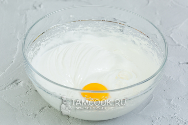 Затем по одному добавьте желтки, не прекращая взбивать.