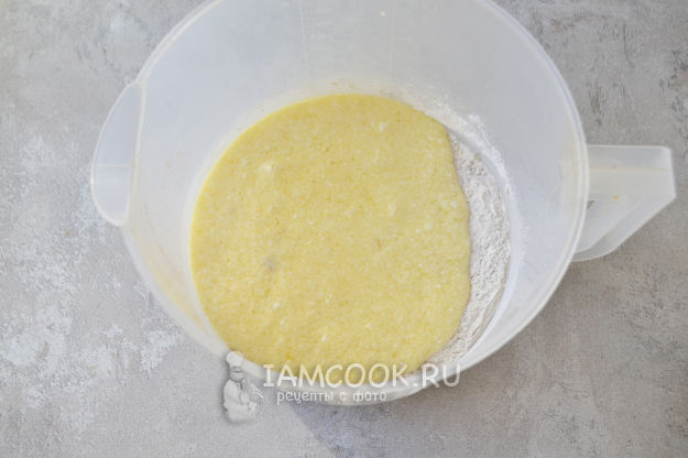 Перемешайте ложкой или венчиком, чтобы получилось однородное, без комочков, густое тесто.