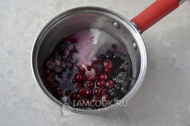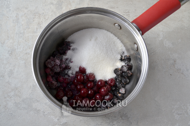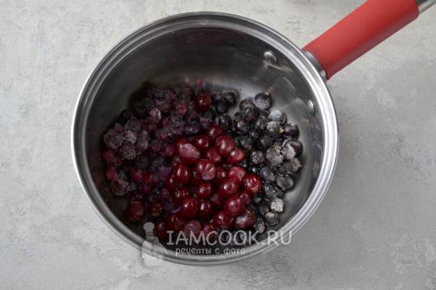 Специально размораживать ягоды не обязательно. Положите ягоды в сотейник.