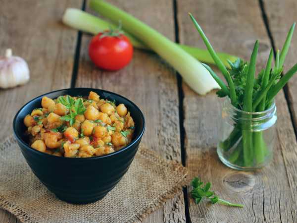 Подготовим ингредиенты для израильского фалафеля, почистим лук и чеснок.