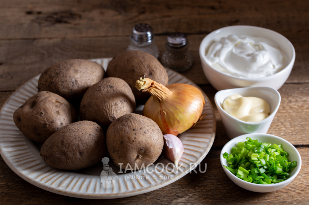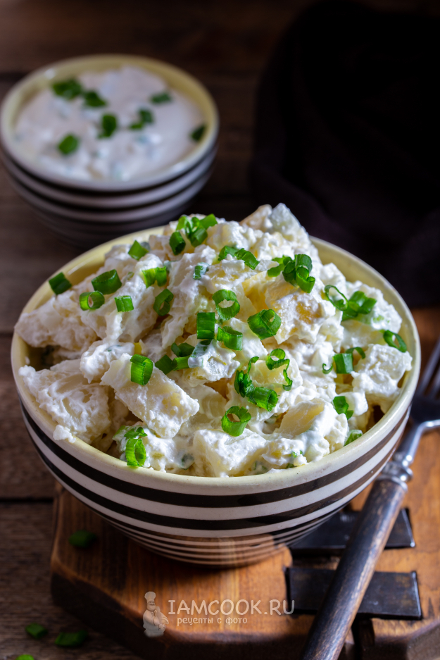 Подготовьте ингредиенты для шведского картофельного салата. Картофель предварительно следует отварить и остудить. Лучше всего отварить картофель в мундире. Для заправки я брала сметану 15% жирности.