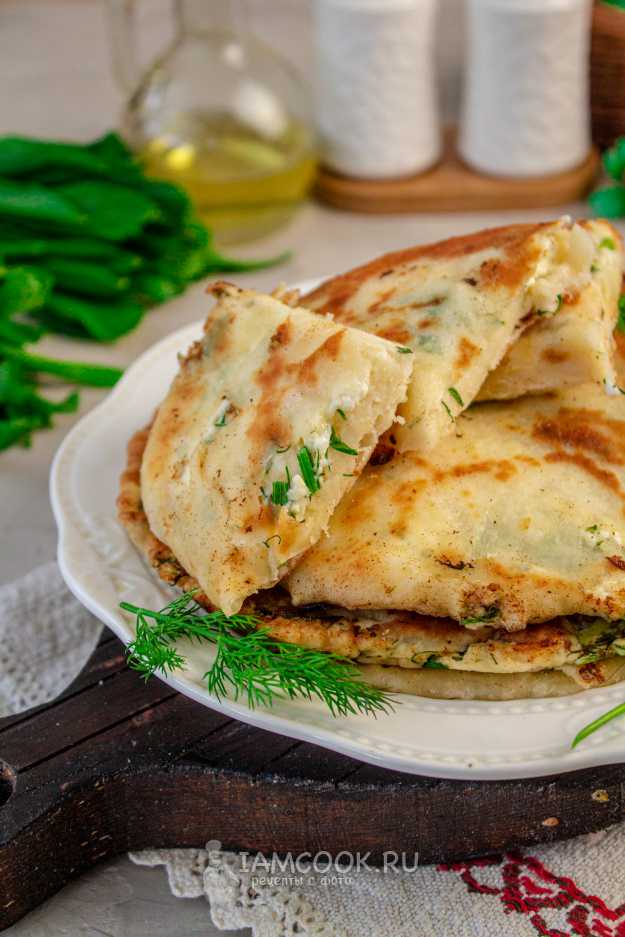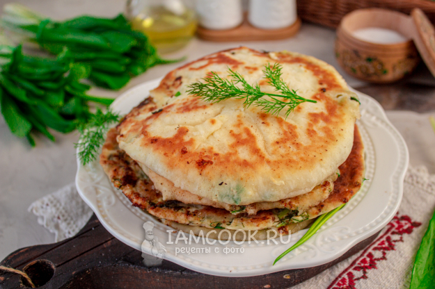 Готовые лепешки с творогом и черемшой подавайте к столу теплыми со сладким чаем.