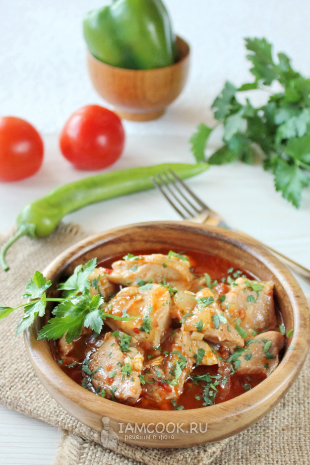 К столу чахохбили из свинины по-грузински подавайте с нарезанной петрушкой или кинзой.