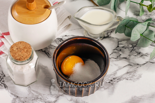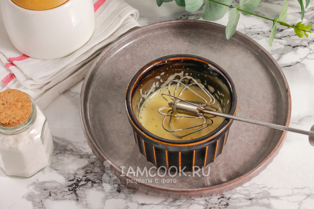 К желтку добавьте сахарный песок и соль. На этом этапе сахар можно заменить цветочным медом.