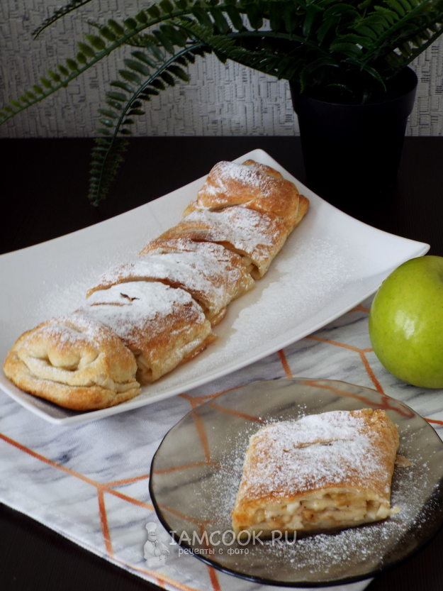 Штрудель с бананом и яблоком готов.