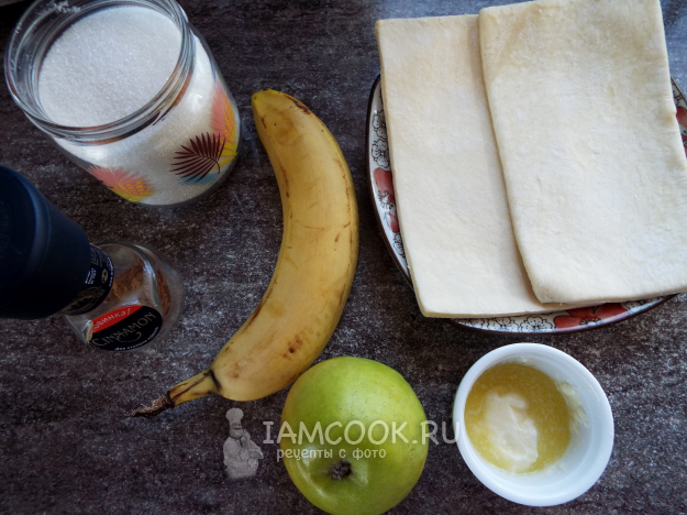 Подготовить продукты для штруделя с бананом и яблоком.