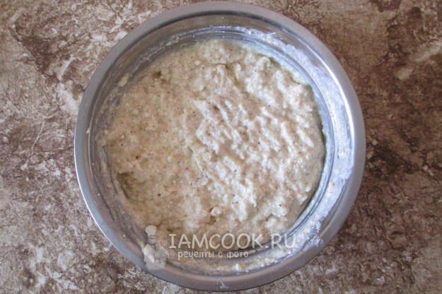 Тесто получится в виде липкой массы. Дайте ему 5-10 минут постоять.