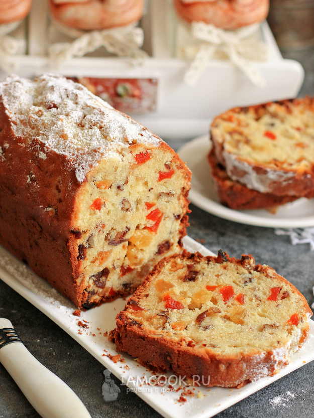 В горячем виде кекс довольно рассыпчатый, а когда остывает, становится плотнее и режется лучше. Поверхность кекса можно посыпать сахарной пудрой. Ну очень вкусно получилось! Приятного вам!
