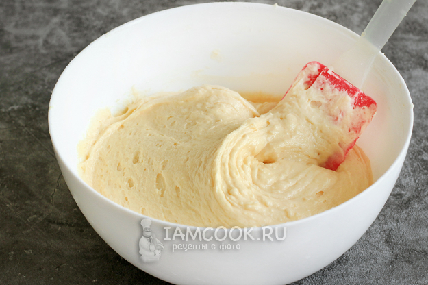 Затем всыпьте муку с разрыхлителем и ванилином и тщательно размешайте тесто. У меня ушло на 30 г меньше муки, чем заявлено в рецепте.