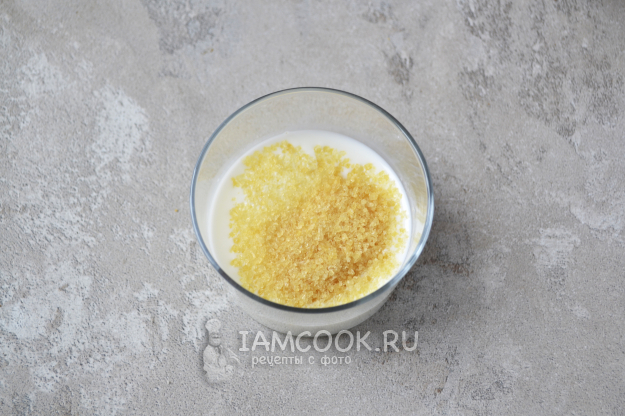 В холодное молоко насыпьте желатин и оставьте для набухания, в соответствии с указаниями на упаковке.