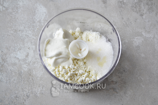В чашу блендера положите творог, сметану, сахар, накапайте ванильный экстракт.