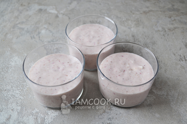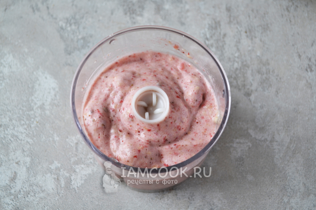При помощи насадки металлический нож измельчите продукты до однородной массы. Переложите бананово-клубничную массу в другую посуду.