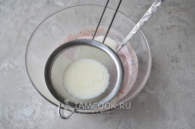 Набухший желатин нагрейте, но не доводите до кипения. Влейте желатин в миску, процедив через ситечко.