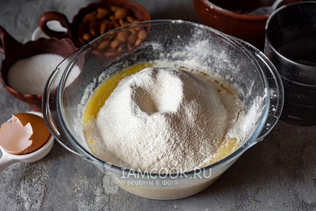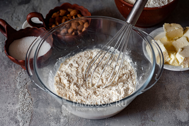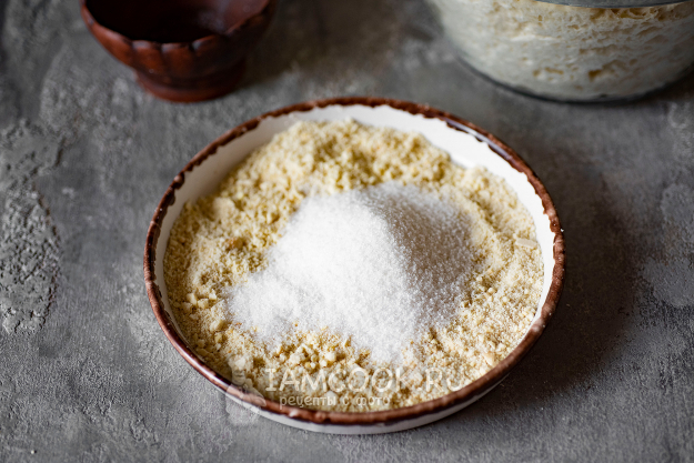 К измельченному миндалю добавим сахар.