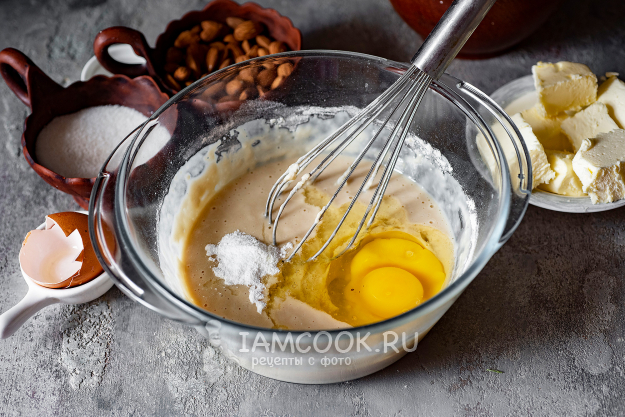 После чего добавим соль, ванилин, вобьем яйца. Перемешаем.