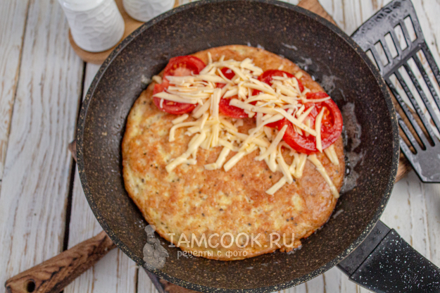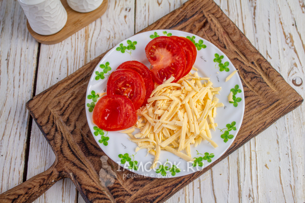 Сыр натрите на терке, помидор нарежьте на кружочки.