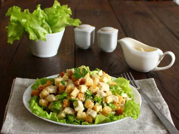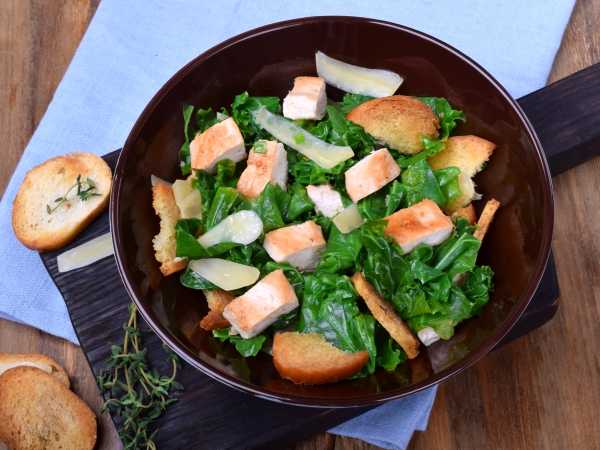 Подготовьте необходимые ингредиенты для создания вегетарианского салата «Цезарь».