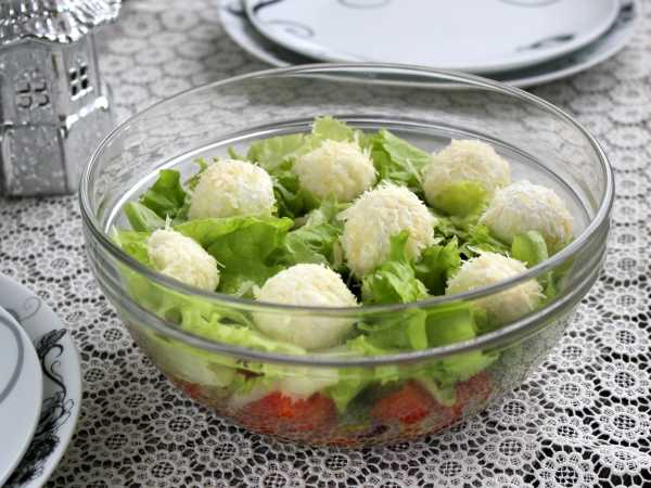 Промойте листья салата и обсушите бумажными салфетками. Нарвите руками и выложите в салатник.